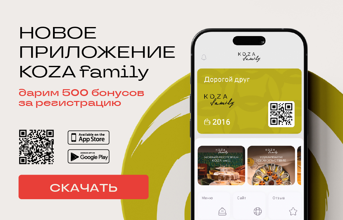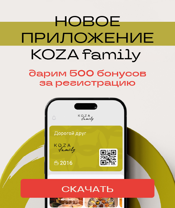 Ускользайте от обыденности и повседневности в волшебном мире Koza Family. Растворяйтесь в удивительной атмосфере ресторанов, поражаясь красоте авангардных коктейлей и восхищаясь совершенством блюд.